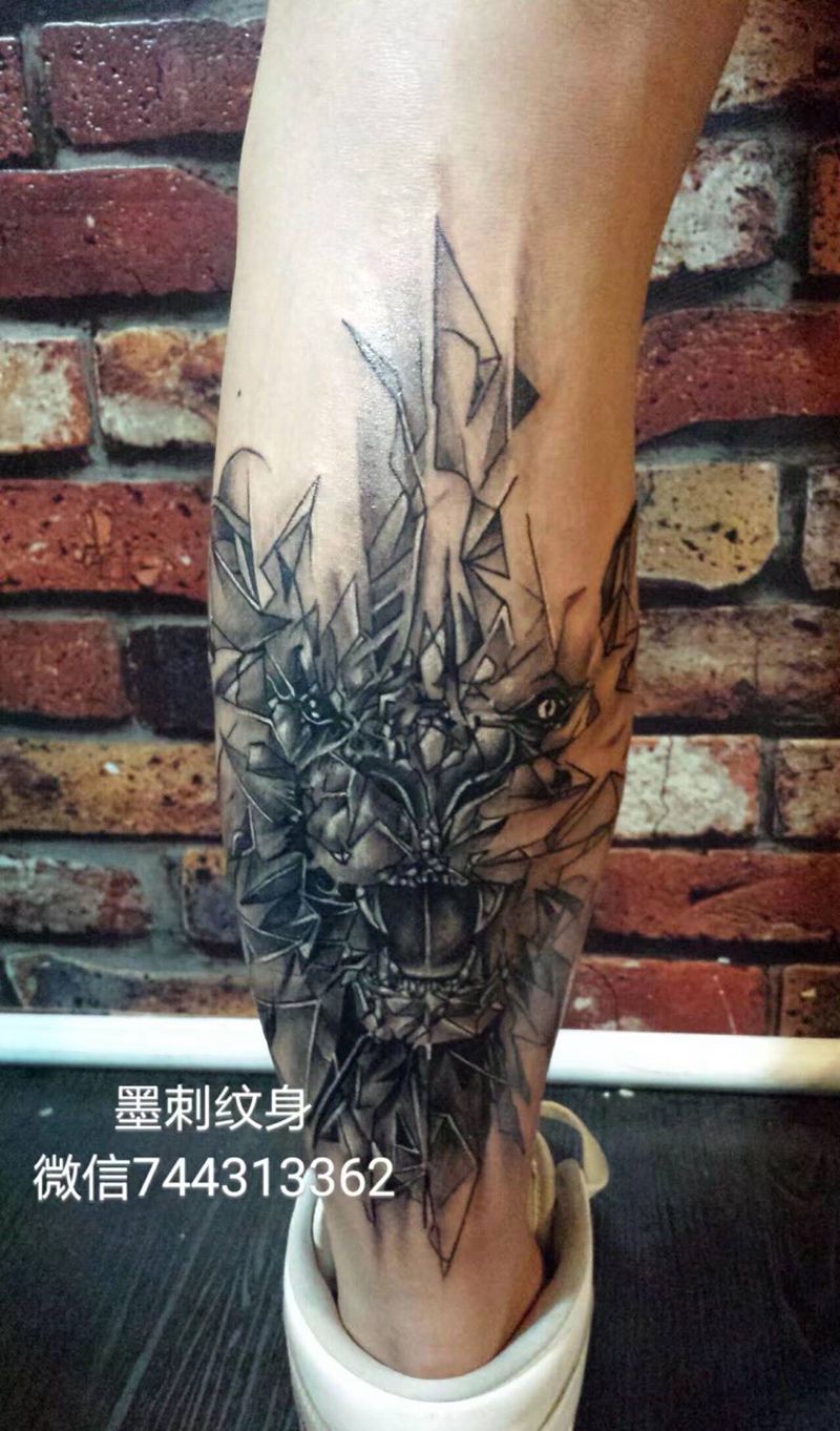 • T网红王老大花腿龙纹身图片_腿部新传统纹身图案