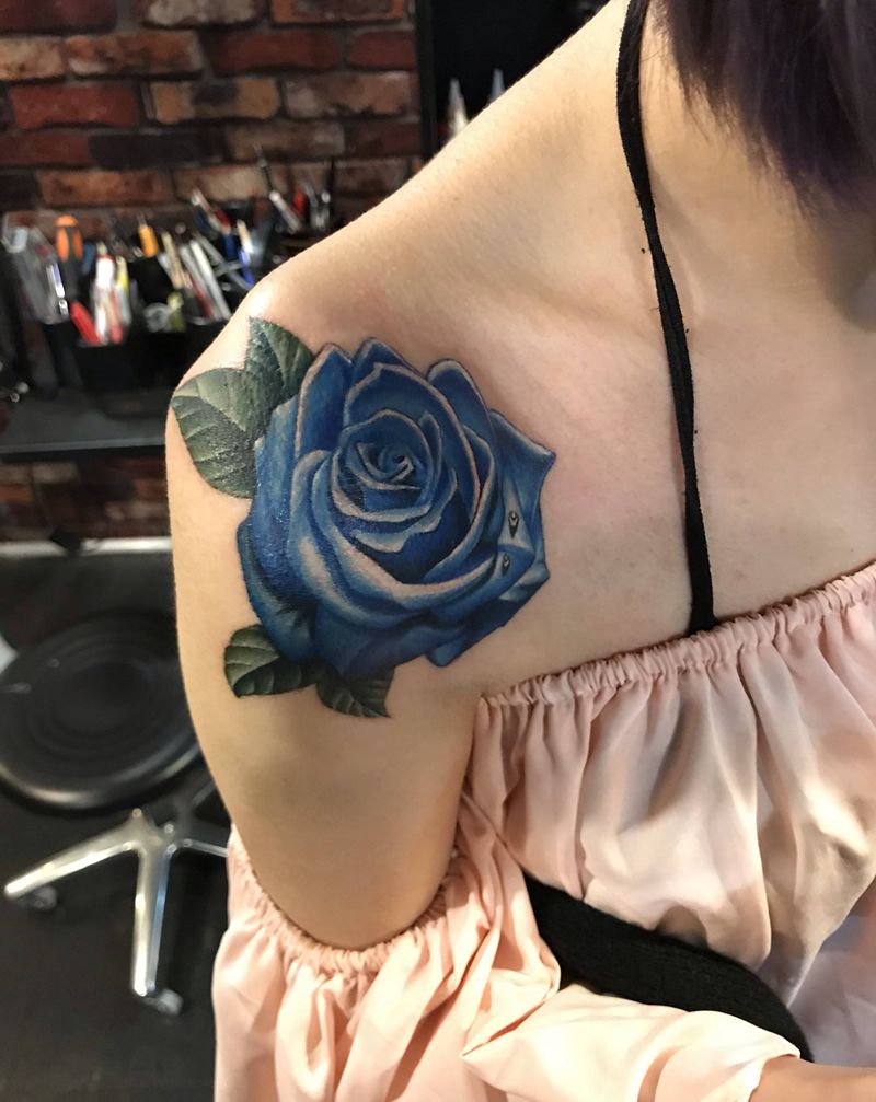 玫瑰花纹身图片_肩部欧美写实纹身图案