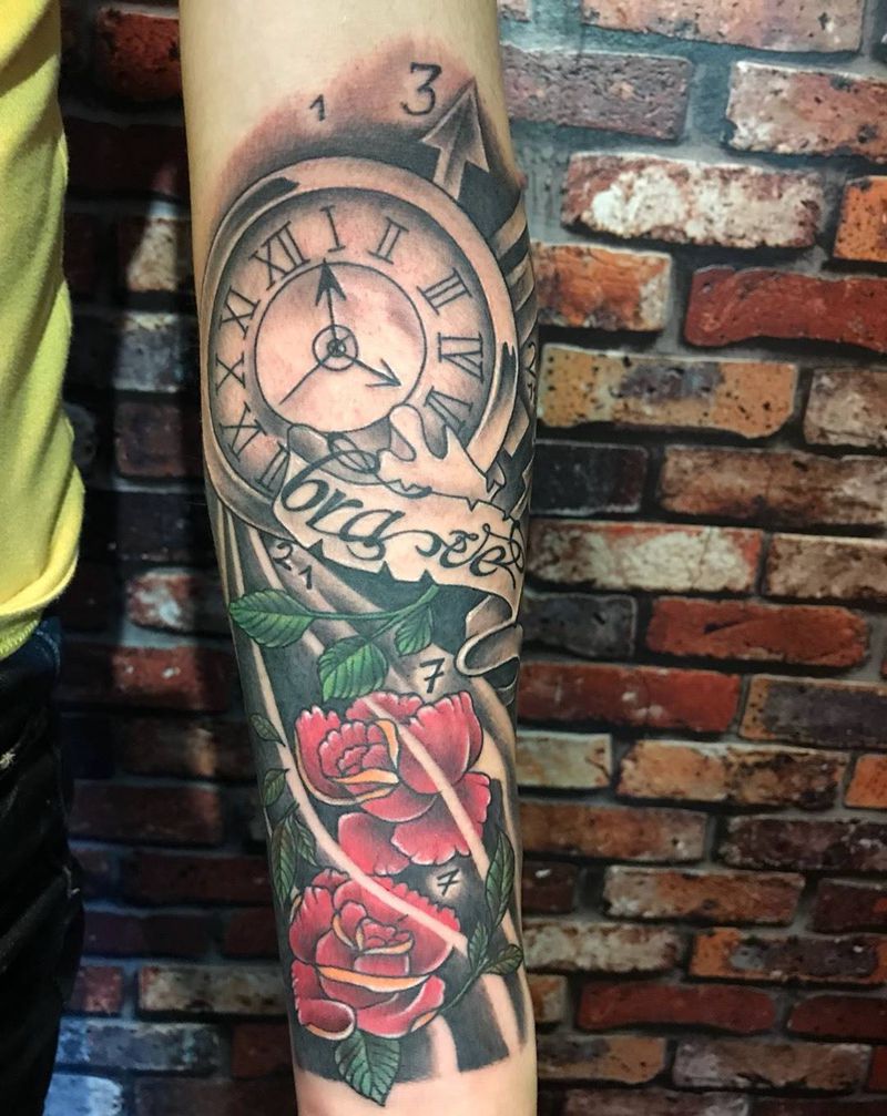 当前位置: 首页 >广东省佛山市纹身店-刺修者纹身店纹身图案>时钟玫瑰纹身图片