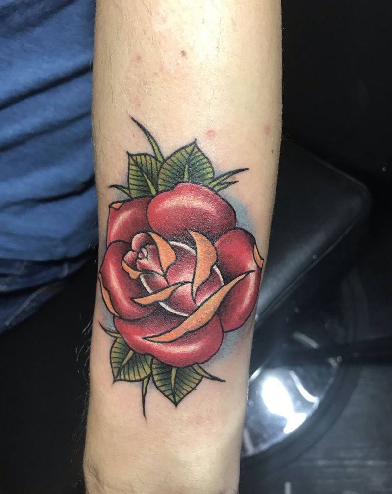 当前位置: 首页 >广东省佛山市纹身店-刺修者纹身店纹身图案>玫瑰花纹身图片_手臂New School纹身图案