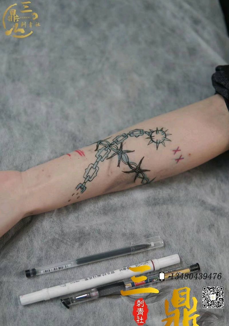 当前位置: 首页 >广东省佛山市纹身店-三鼎刺青纹身图案>小清新流星锤纹身图片_手臂纹身图案