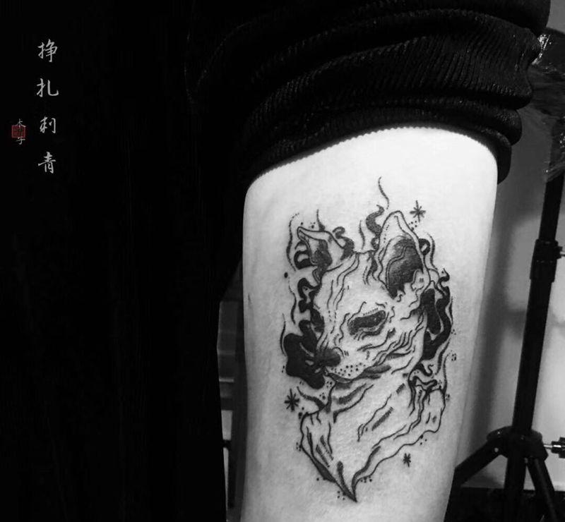 当前位置: 首页 >广东省佛山市纹身店-挣扎刺青工作室纹身图案>念纹身图片_腿部新传统图腾纹身图案