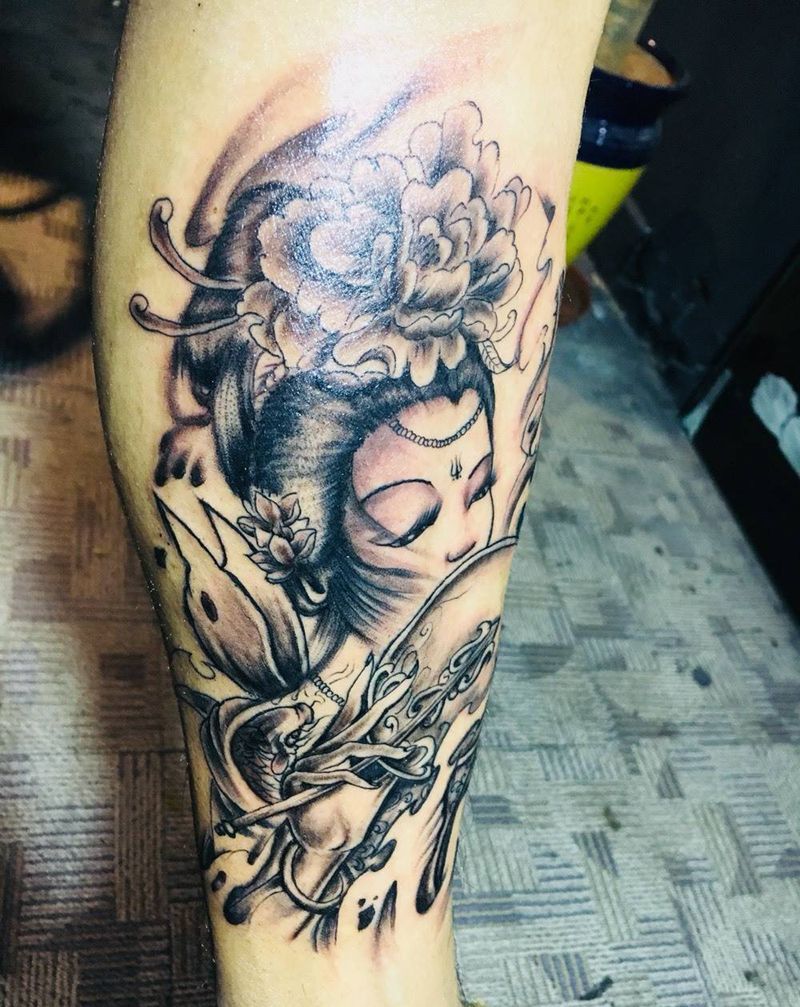 • T网红王老大花腿龙纹身图片_腿部新传统纹身图案