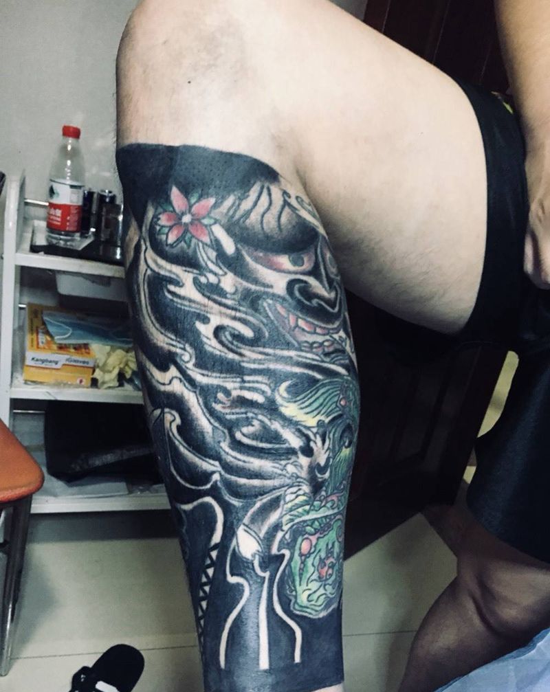 • T网红王老大花腿龙纹身图片_腿部新传统纹身图案