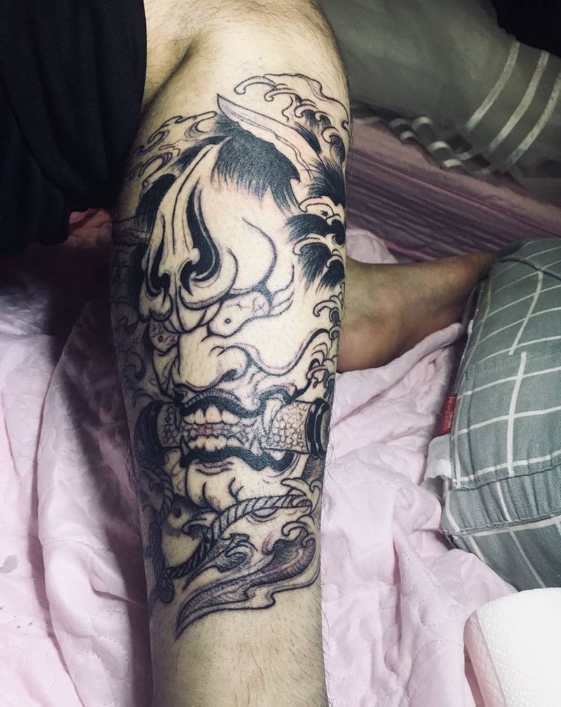 • T网红王老大花腿龙纹身图片_腿部新传统纹身图案