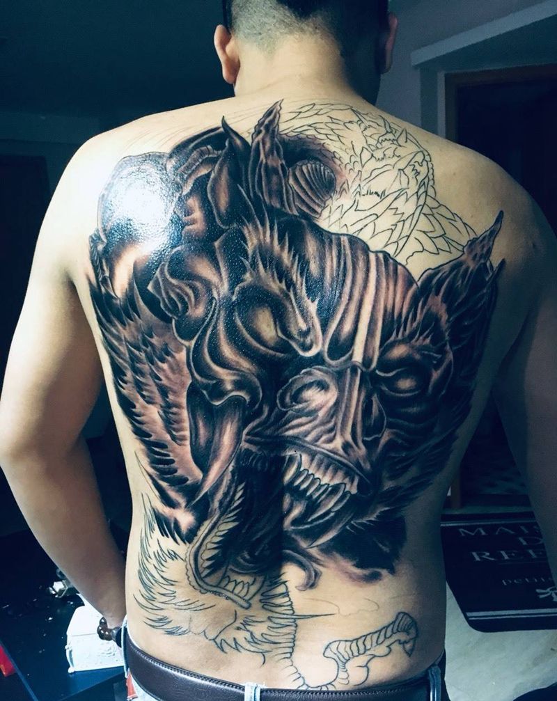 黑灰满背纹身图案