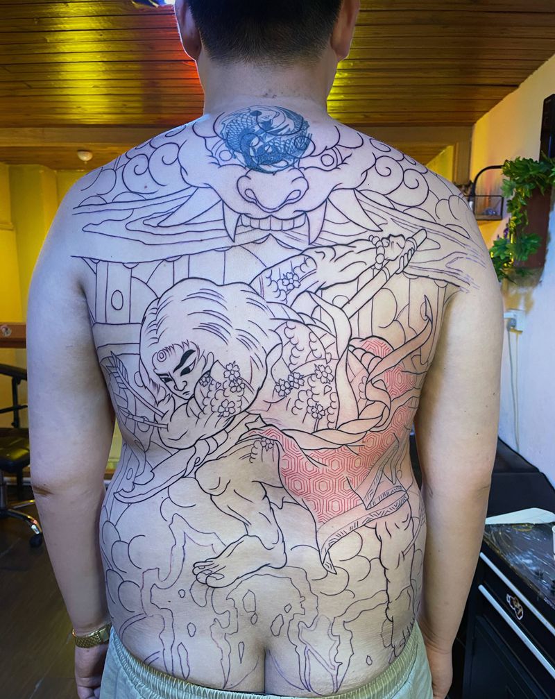 当前位置: 首页 >广东省佛山市纹身店-华势刺青工作室纹身图案>张顺plus纹身图片_背部老传统纹身图案