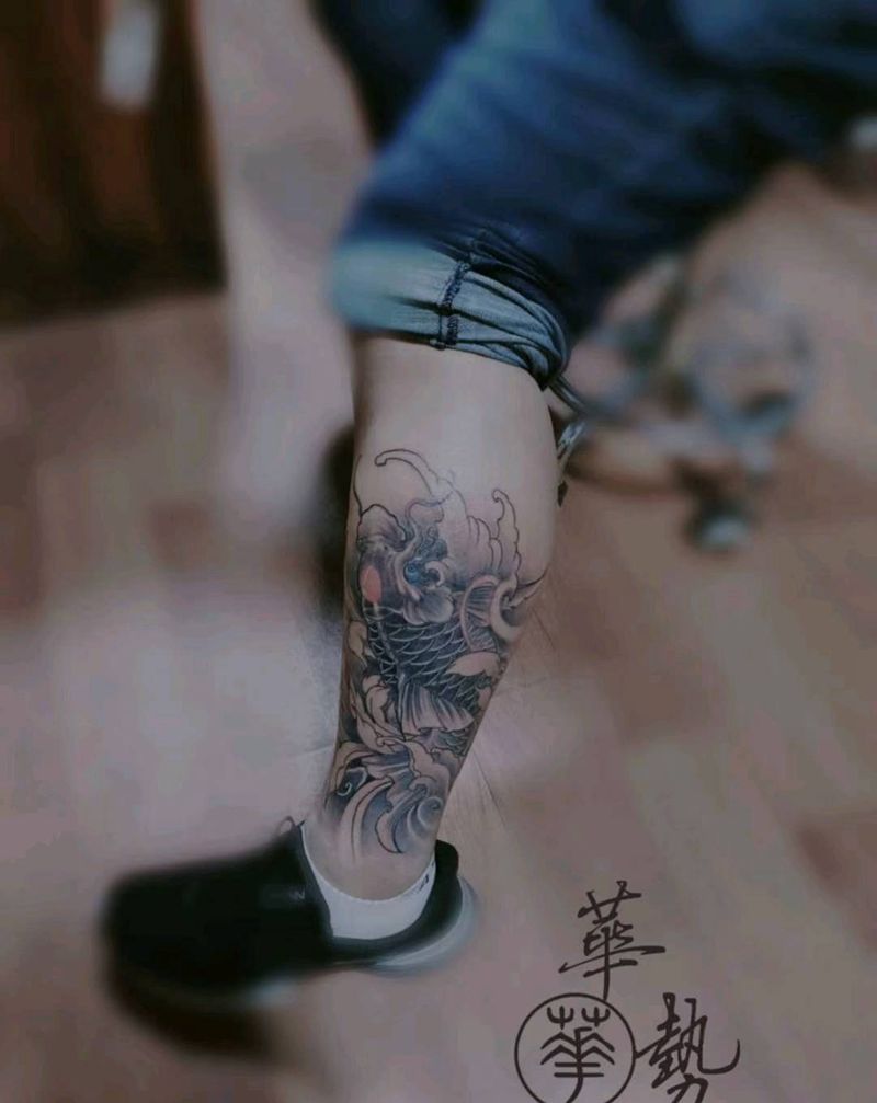 • T网红王老大花腿龙纹身图片_腿部新传统纹身图案