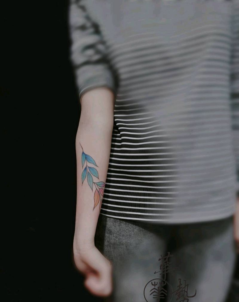 当前位置: 首页 >广东省佛山市纹身店-华势刺青工作室纹身图案>小叶子纹身图片_手部水彩纹身图案