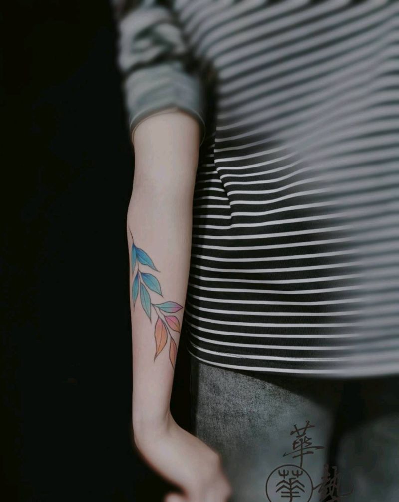 小叶子纹身图片_手部水彩纹身图案