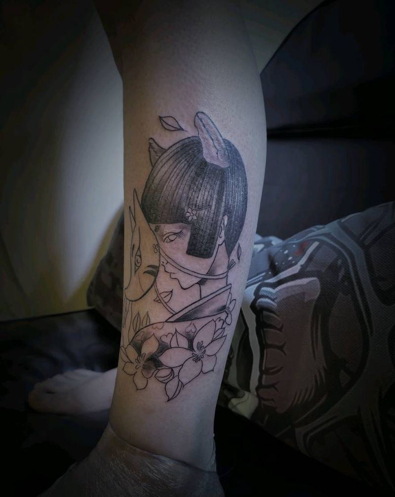 遮盖待续纹身图片_腿部新传统艺伎纹身图案