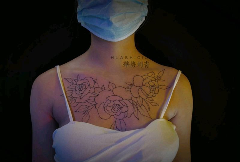 花胸线条待续!纹身图片_胸部素花纹身图案