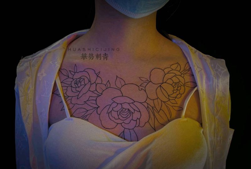 花胸线条待续!纹身图片_胸部素花纹身图案