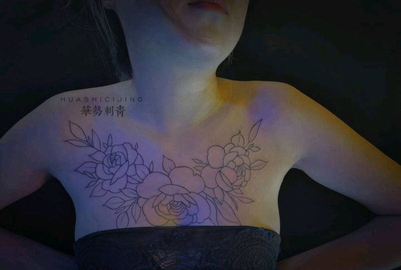 花胸 线条待续!未完成纹身图片_胸部素花纹身图案