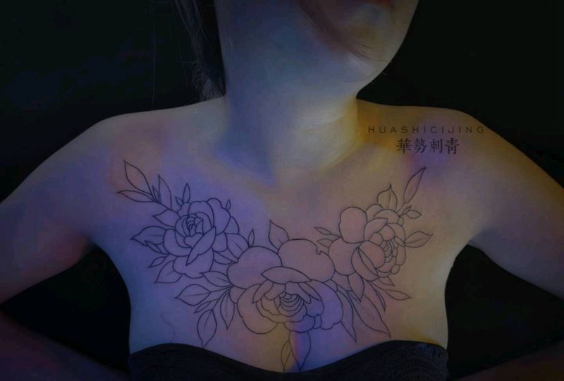 花胸 线条待续!未完成纹身图片_胸部素花纹身图案