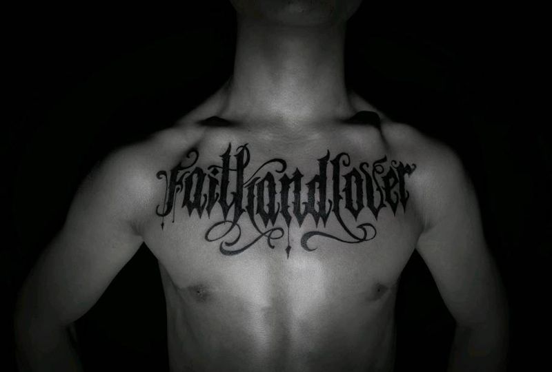 花体字大花胸纹身图片_胸部花体字纹身图案