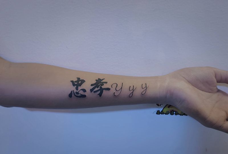 当前位置: 首页 >广东省佛山市纹身店-华势刺青工作室纹身图案>文字纹身图片_手臂手部图腾纹身图案