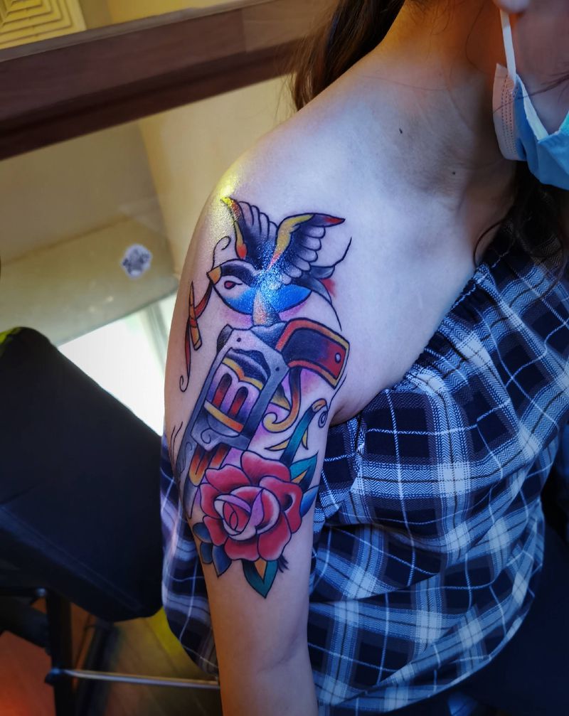 当前位置: 首页 >广东省佛山市纹身店-华势刺青工作室纹身图案>欧美纹身图片_手臂肩部Old School纹身图案
