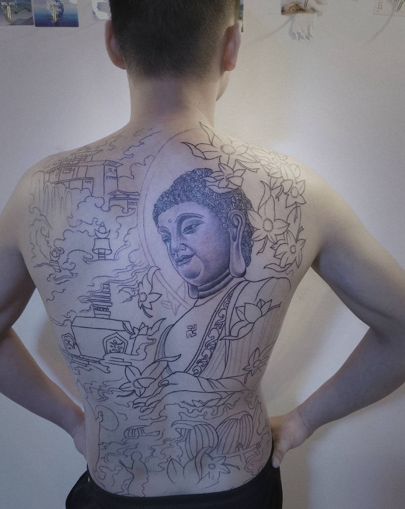 当前位置: 首页 >广东省佛山市纹身店-华势刺青工作室纹身图案>佛纹身图片_背部新传统纹身图案