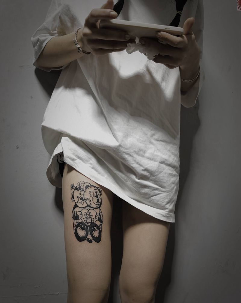 当前位置: 首页 >广东省佛山市纹身店-华势刺青工作室纹身图案>小熊纹身图片_腿部脚部几何纹身图案