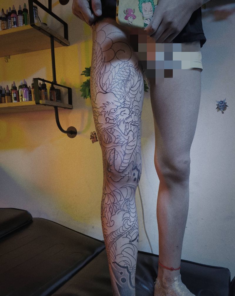 • T网红王老大花腿龙纹身图片_腿部新传统纹身图案
