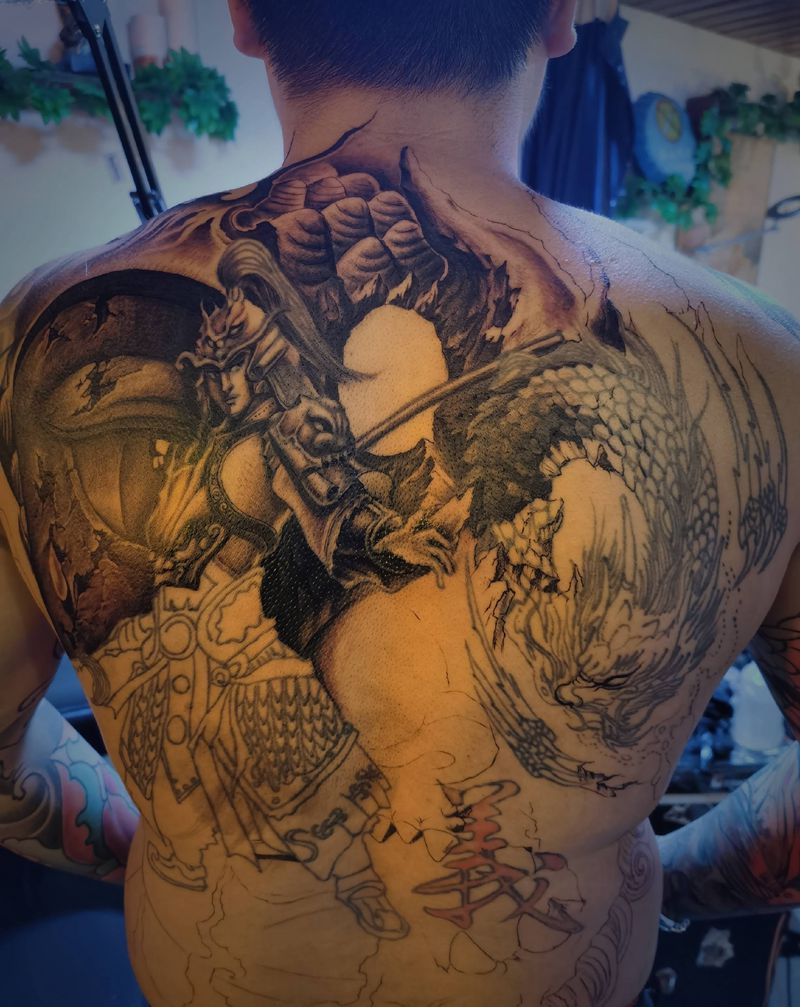 当前位置: 首页 >广东省佛山市纹身店-华势刺青工作室纹身图案>修改 遮盖进度纹身图片_背部臀部欧美写实纹身图案