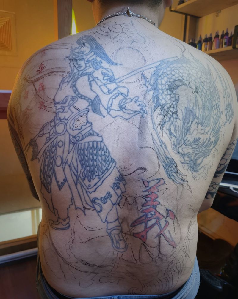 当前位置: 首页 >广东省佛山市纹身店-华势刺青工作室纹身图案>修改 遮盖进度纹身图片_背部臀部欧美写实纹身图案