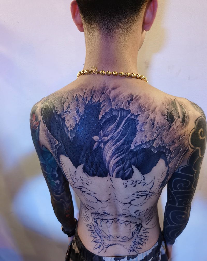 • 黑灰满背纹身图案