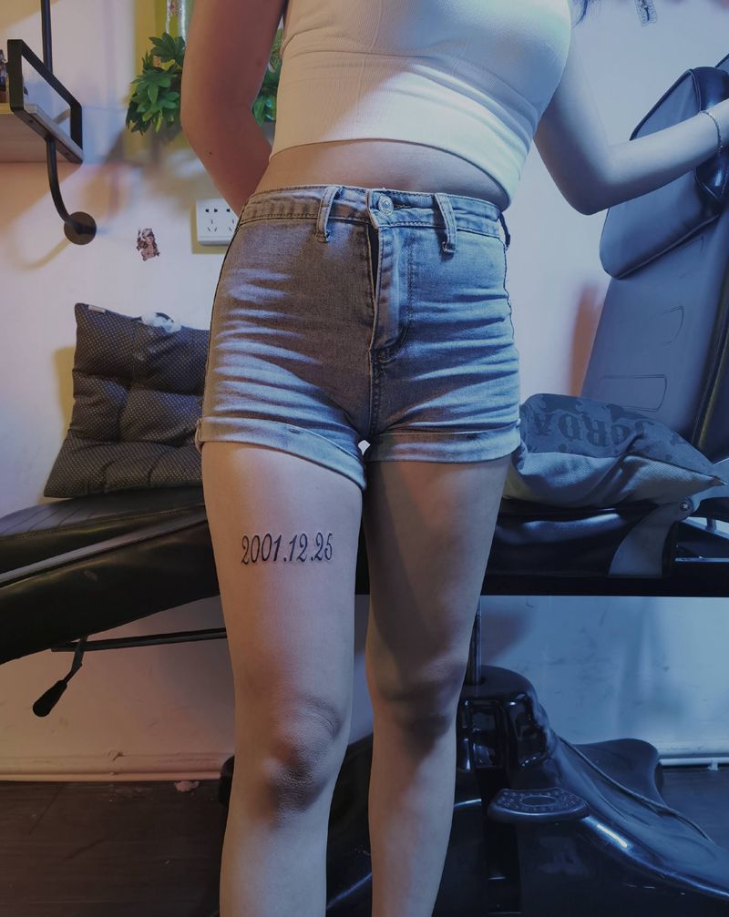 生日纹身图片_腿部纹身图案