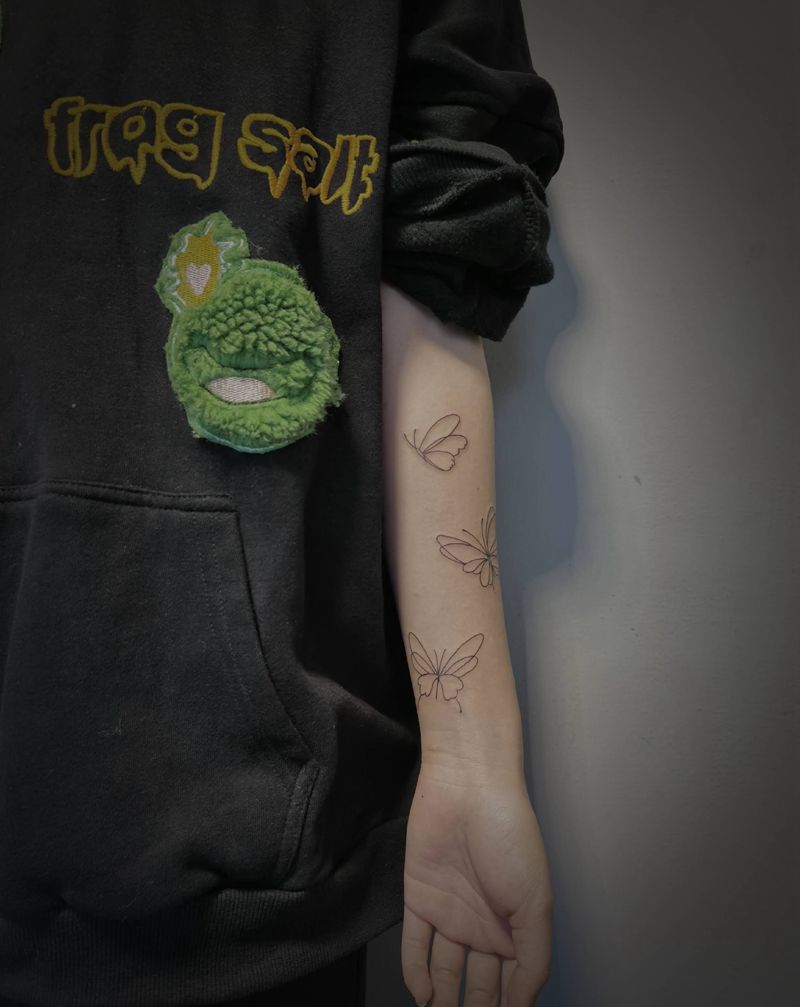 当前位置: 首页 >广东省佛山市纹身店-华势刺青工作室纹身图案>三只蝴蝶纹身图片_手部手臂几何纹身图案