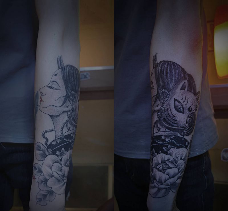 当前位置: 首页 >广东省佛山市纹身店-华势刺青工作室纹身图案>艺伎纹身图片_手部手臂点刺纹身图案