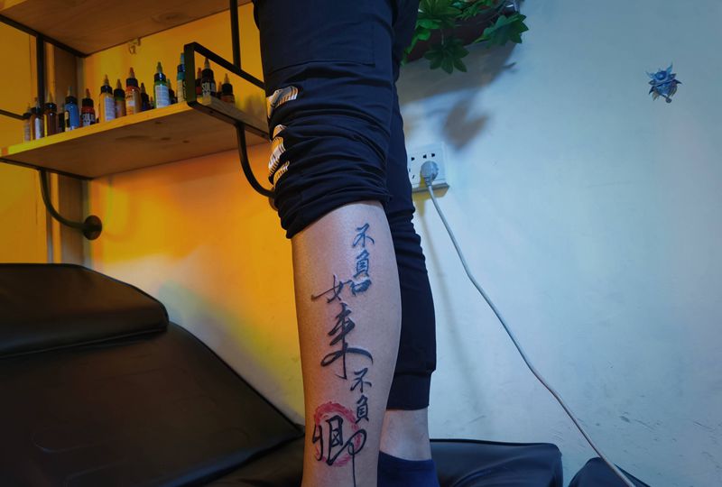 当前位置: 首页 >广东省佛山市纹身店-华势刺青工作室纹身图案>字体纹身图片_腿部新传统纹身图案