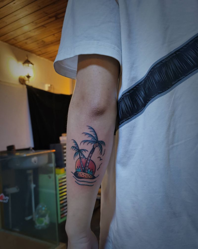当前位置: 首页 >广东省佛山市纹身店-华势刺青工作室纹身图案>椰树纹身图片_手部手臂Old School纹身图案