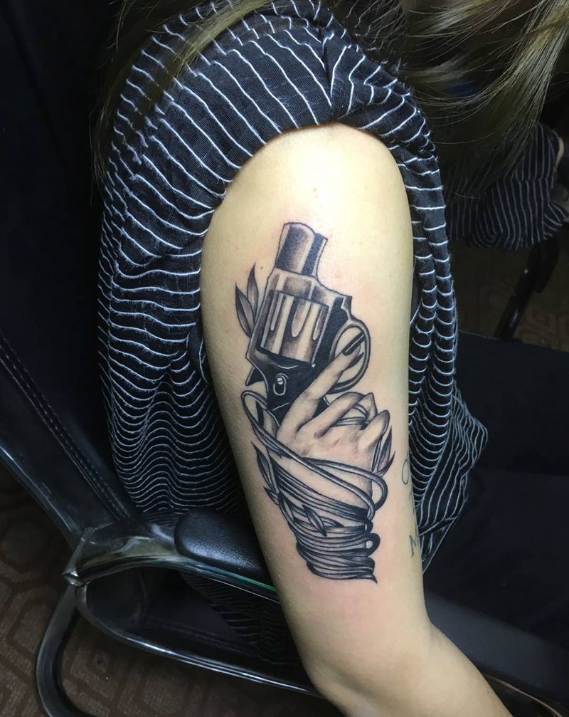 当前位置: 首页 >广东省佛山市纹身店-越绣堂新刺客纹身图案>枪纹身图片