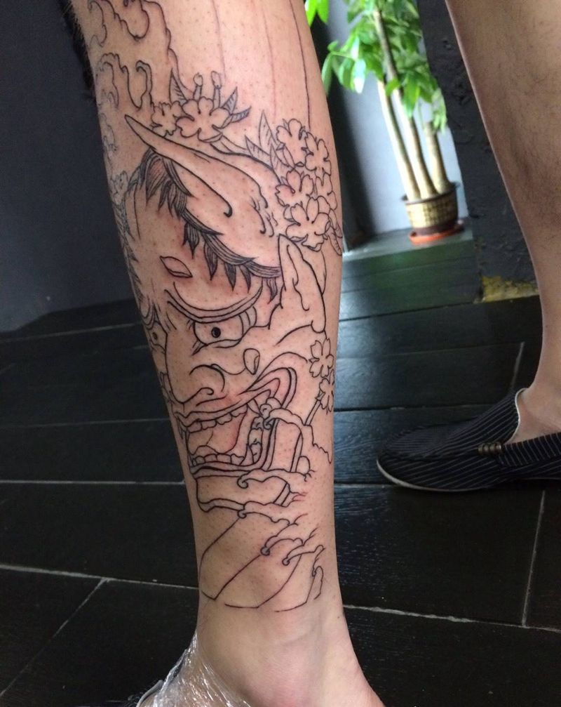 • T网红王老大花腿龙纹身图片_腿部新传统纹身图案
