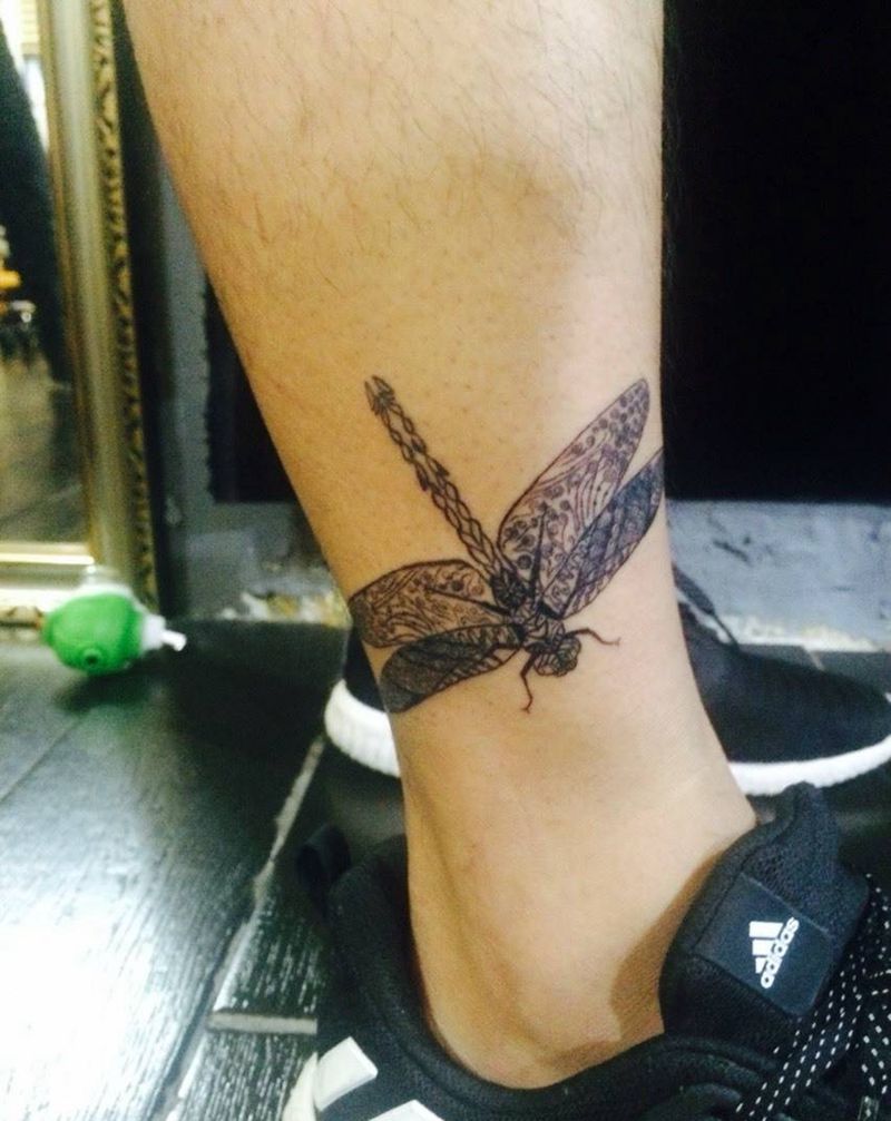 蜻蜓纹身图片_成品腿部脚部图腾纹身图案