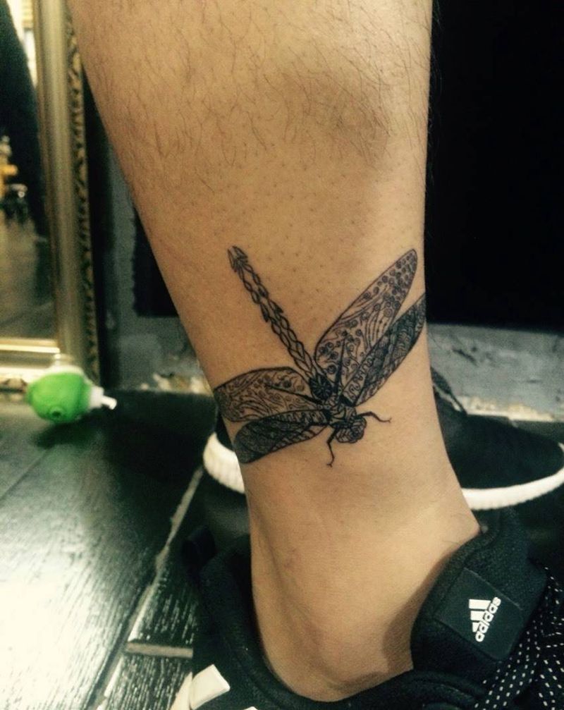 蜻蜓纹身图片_成品腿部脚部图腾纹身图案