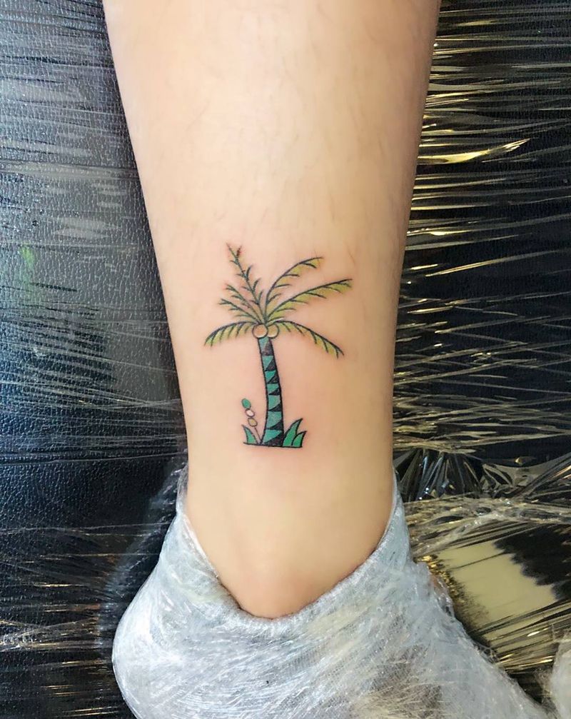 椰树纹身图片_成品腿部脚部静物纹身图案