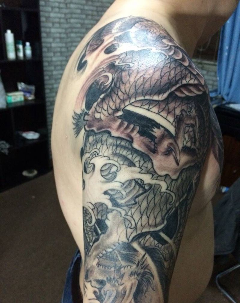 当前位置: 首页 >广东省佛山市纹身店-枭龙刺青纹身图案>过肩龙纹身图片
