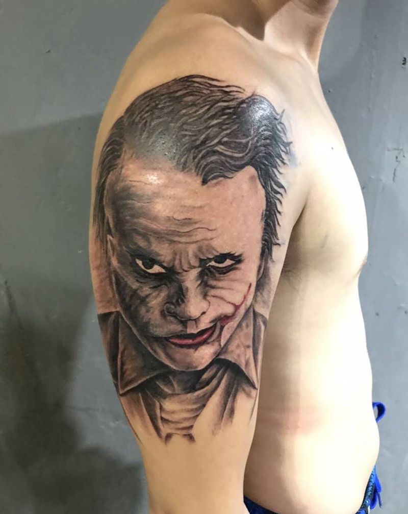 当前位置: 首页 >广东省佛山市纹身店-枭龙刺青纹身图案>小丑纹身图片_成品手臂手部欧美人物肖像纹身图案