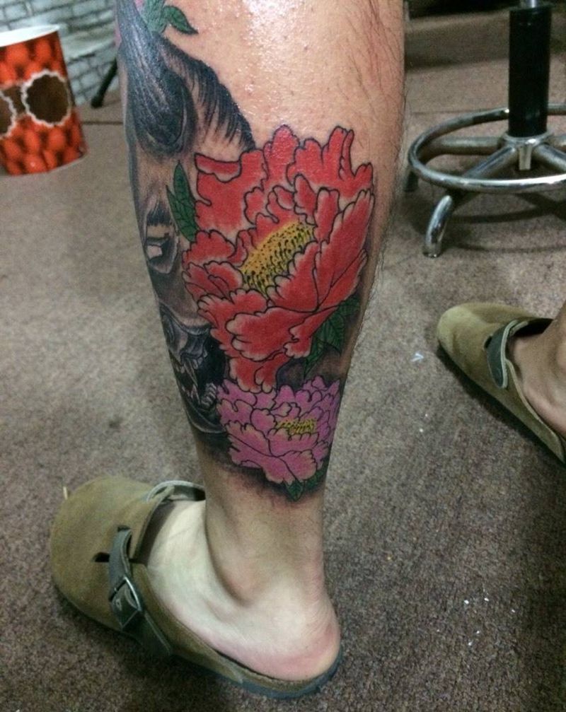 • T网红王老大花腿龙纹身图片_腿部新传统纹身图案