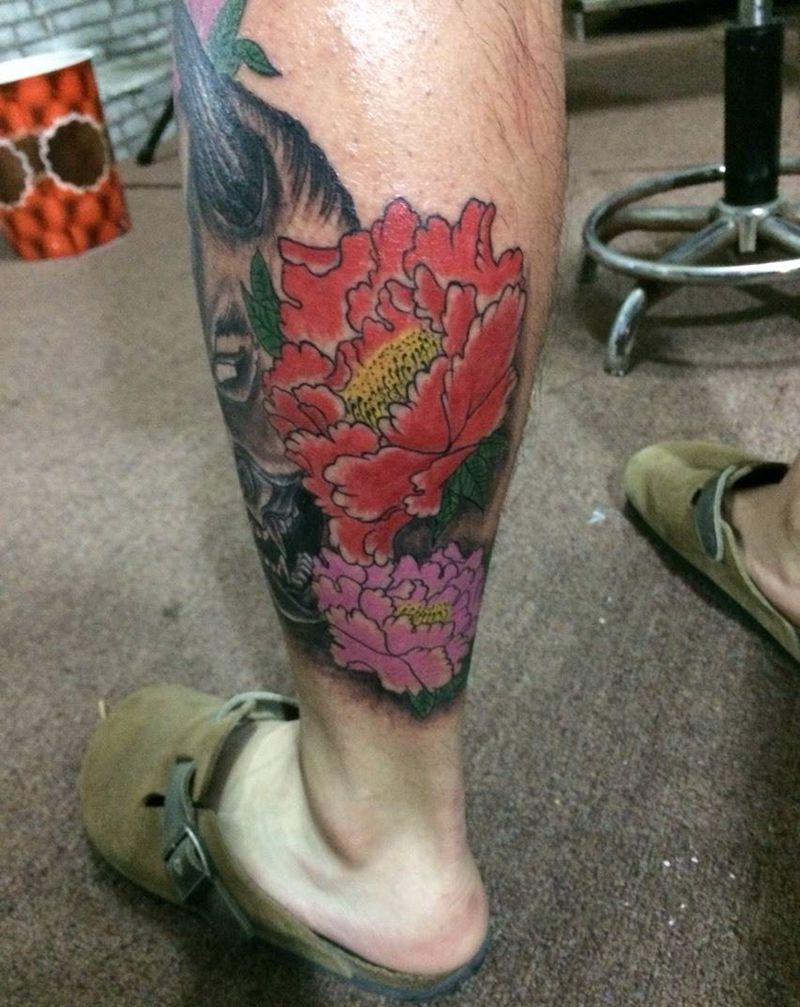 • T网红王老大花腿龙纹身图片_腿部新传统纹身图案