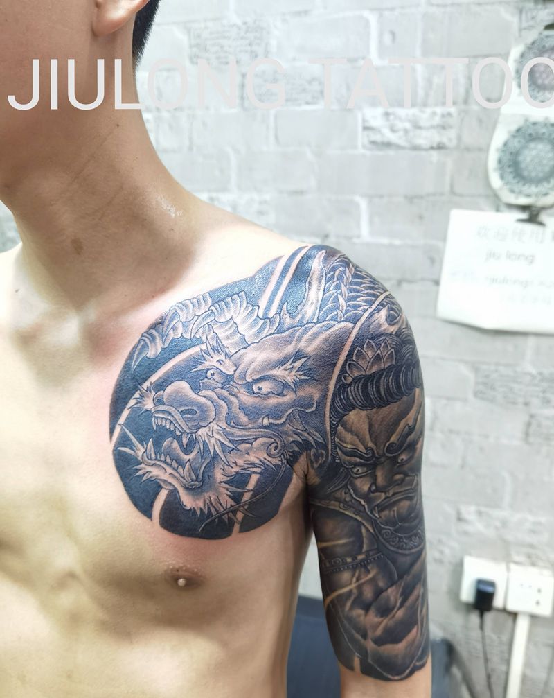当前位置: 首页 >广东省佛山市纹身店-九龍纹身纹身图案>半胛纹身图片_手臂胸部新传统纹身图案