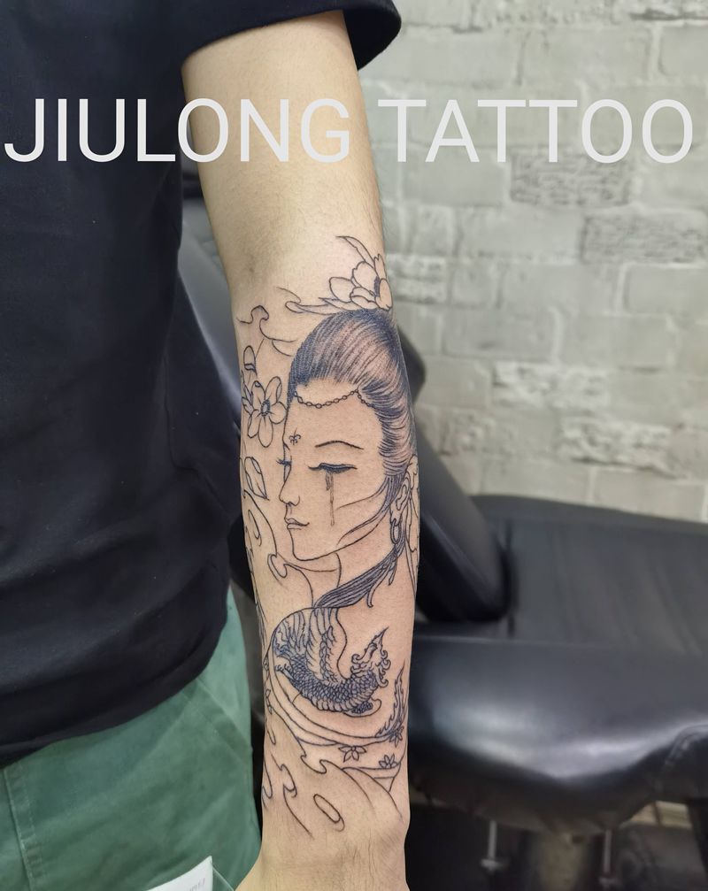当前位置: 首页 >广东省佛山市纹身店-九龍纹身纹身图案>艺伎勾线纹身图片_手臂新传统纹身图案