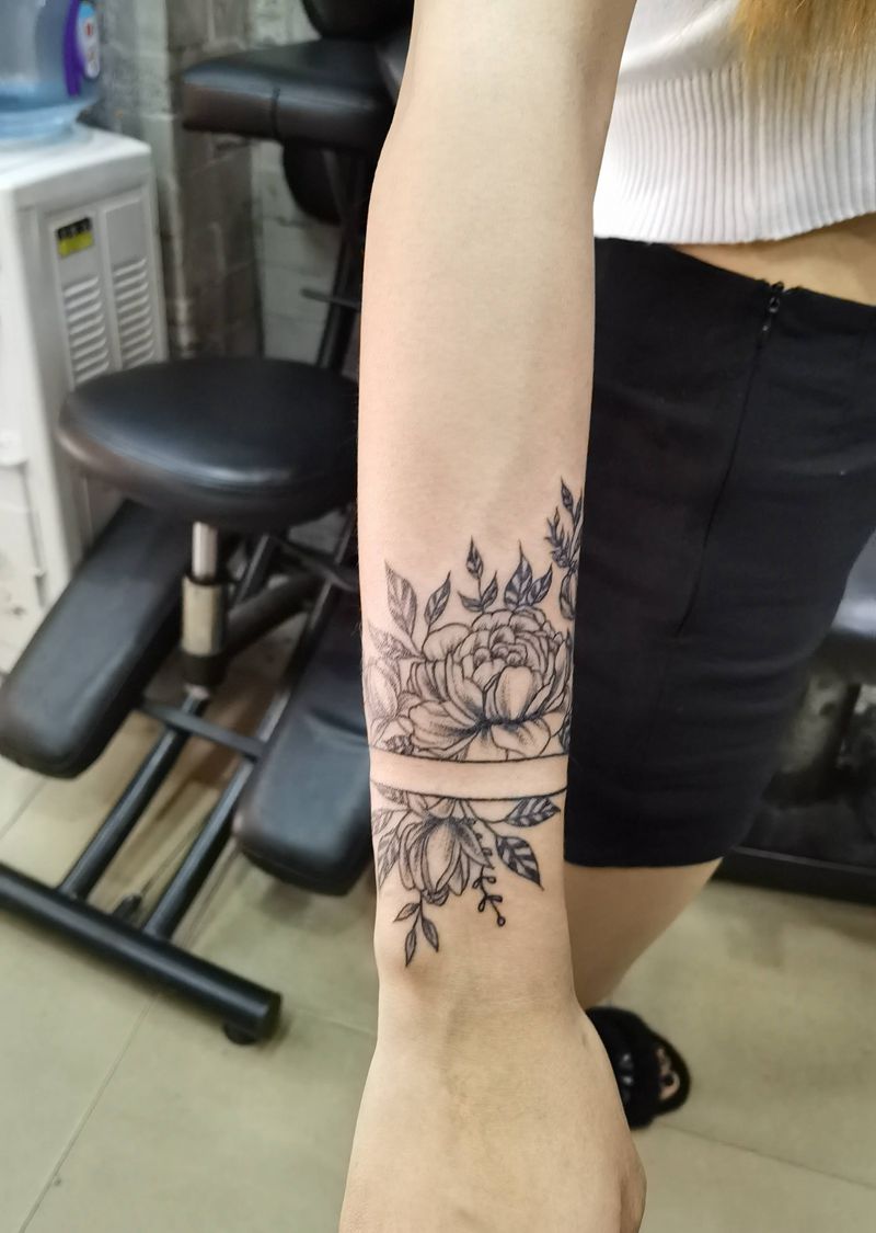 素花臂环纹身图片_手臂点刺纹身图案
