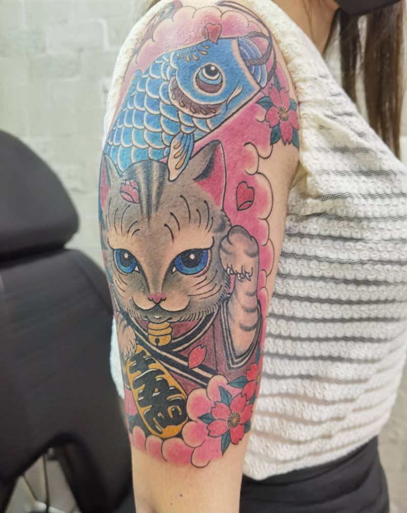 当前位置: 首页 >广东省佛山市纹身店-九龍纹身纹身图案>招财猫纹身图片_手臂纹身图案