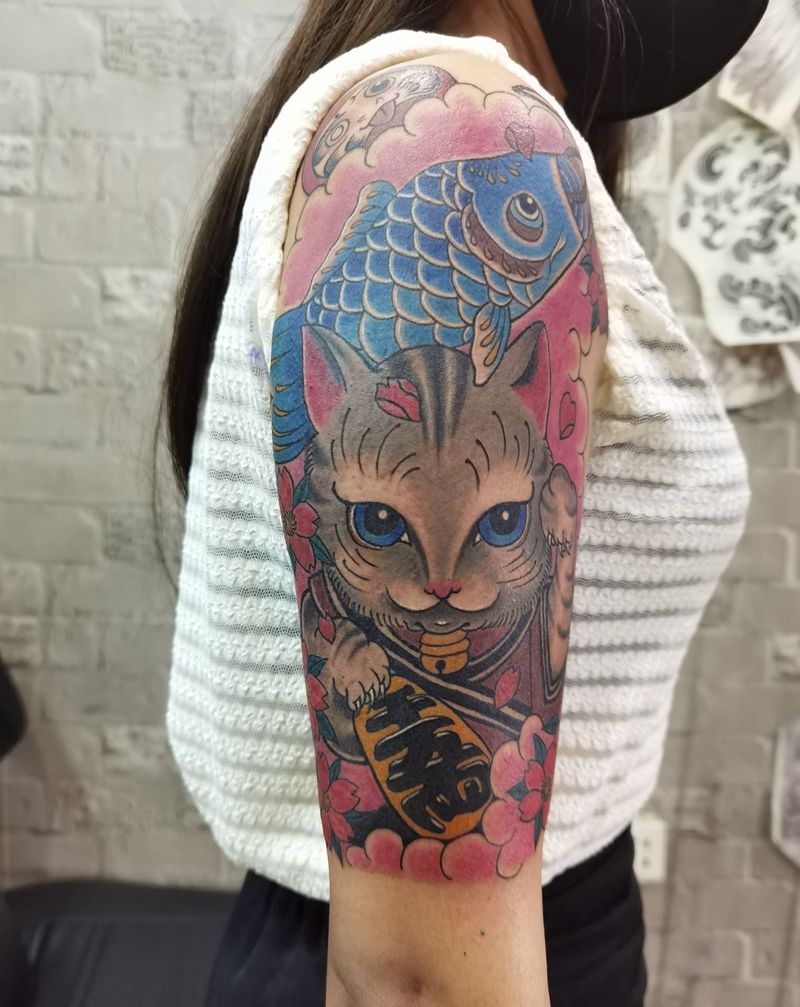 当前位置: 首页 >广东省佛山市纹身店-九龍纹身纹身图案>招财猫纹身图片_手臂纹身图案