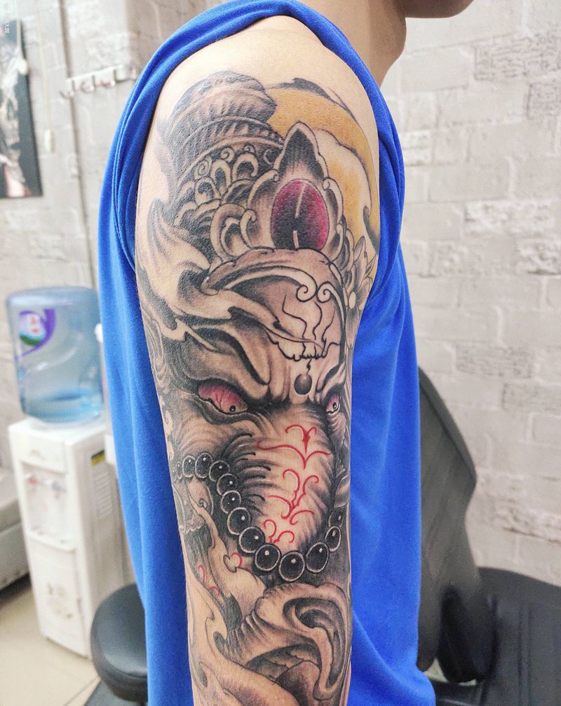 当前位置: 首页 >广东省佛山市纹身店-九龍纹身纹身图案>象神纹身图片_手臂新传统纹身图案