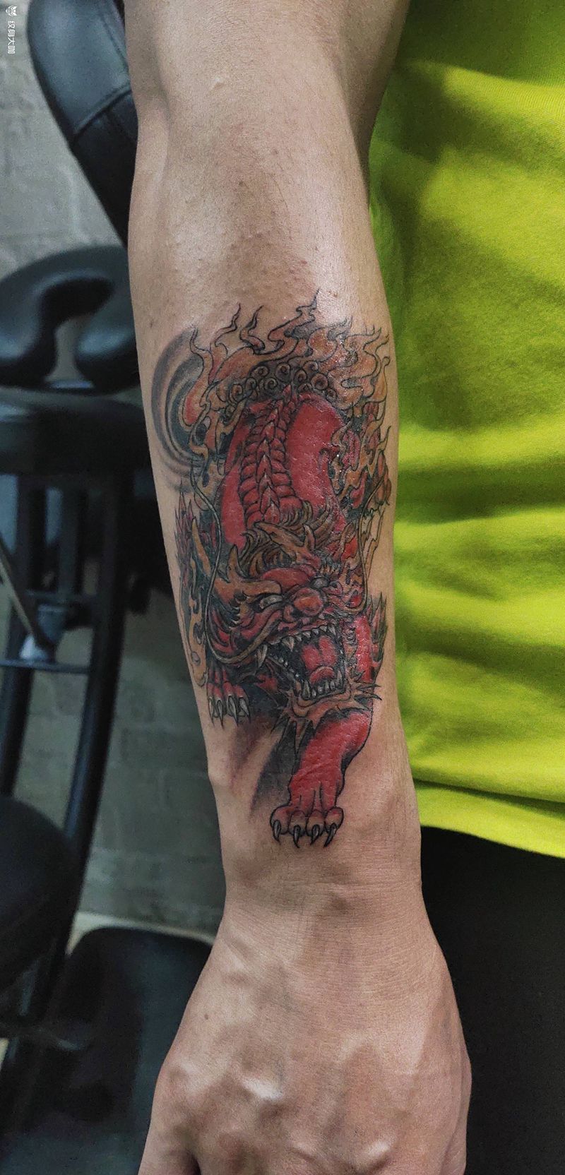 当前位置: 首页 >广东省佛山市纹身店-九龍纹身纹身图案>火麒麟纹身图片_手臂新传统纹身图案