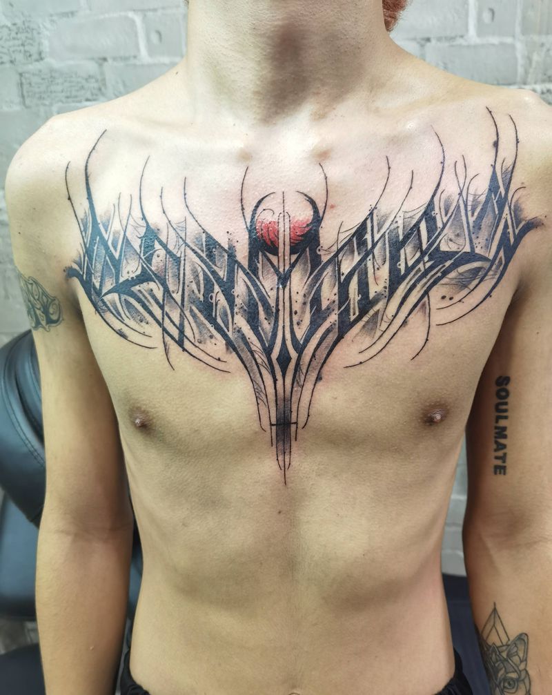 暗黑花体英文纹身图片_胸部花体字纹身图案